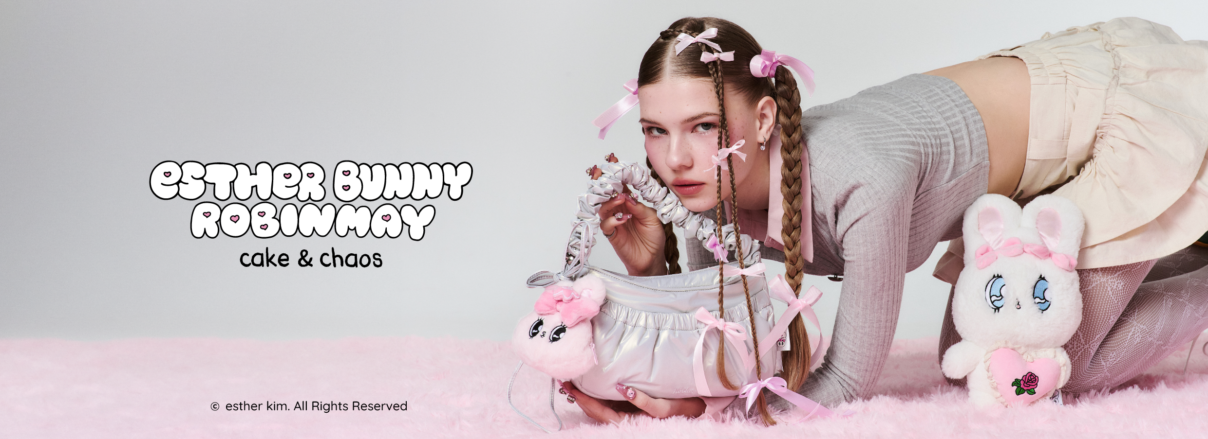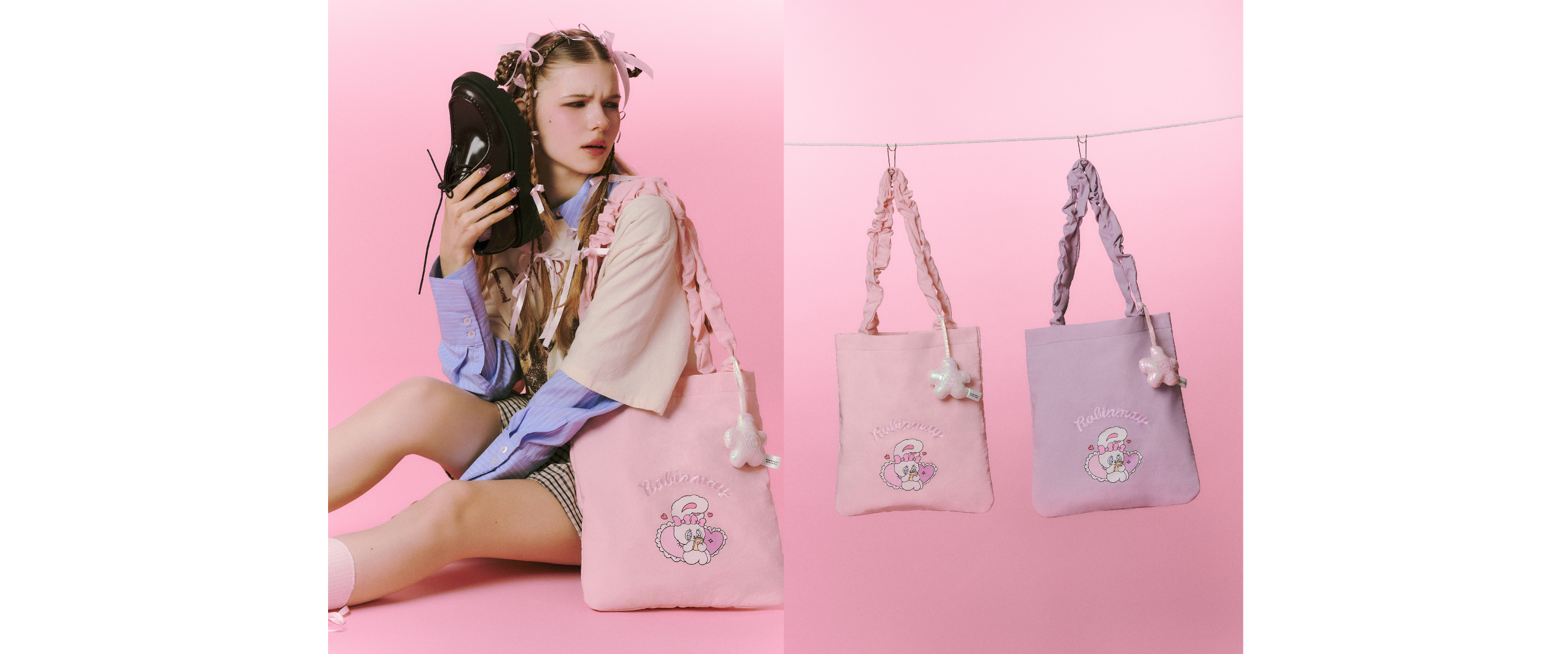 ROBINMAY 與艾絲樂小兔(ESTHER BUNNY)攜手推出的聯名系列,將可愛與時尚完美結合,讓人無法抗拒。由美籍韓裔插畫家 Esther Kim 創作的艾絲樂小兔是一隻甜美又帶點叛逆的兔子,她的世界充滿粉紅色的夢幻風格,但同時也帶著一種「我行我素」的獨特態度。這次的聯名系列不僅在設計上體現了 Esther Bunny 的可愛和甜美,更傳遞了一個訊息:「留時間做自己想做的事」,鼓勵大家在瘋狂的生活中找到自我,享受生活的每一刻。