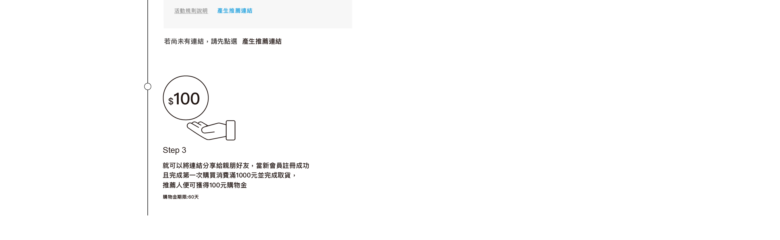 推薦人會在被推薦人完成訂單取貨、訂單狀態更新為「已完成」時,由系統自動發送 NTD$100 購物金。