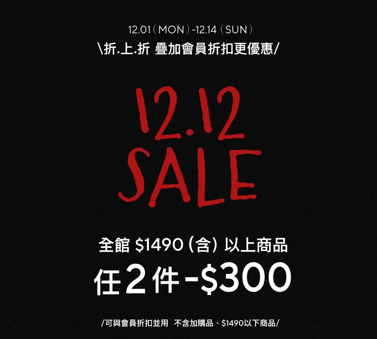 雙12 SALE 滿件折+會員折扣 限時折上折!